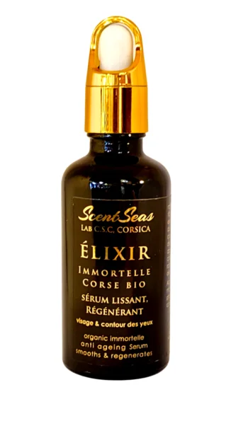 L'Elixir à l'Immortelle est le Saint Graal des soins de la peau. Conçu avec la fleur d'Immortelle (du Niolu en haute montagne du centre Corse), également connue sous le nom de fleur éternelle, cet élixir est reconnu depuis 2007 dans le monde de la beauté grâce à ses bienfaits exceptionnels et ses résultats remarquables.
